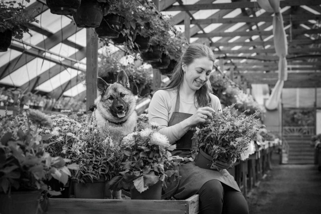 Kristin og hennes norske elghund Frøya jobber i den familiedrevne bedriften https://fagerlidalgartneri.no/